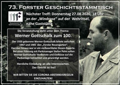 In diesem Jahr 2020 jährt sich eine Personalie, die mit ihrem Lebenswerk weit in die heutige Zeit hinein wirkt und das Image der Stadt Forst positiv beeinflusst. Die Rede