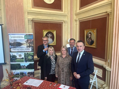 Die Steuerungsgruppe des Projektes „Inwertsetzung Parkverbund“ hat sich am 25. Oktober 2024 in der Schlossorangerie des Herzoglichen Parks in Zatonie im Rahmen des neuen Kooperationsprogramms INTERREG VI A Brandenburg-Polen 2021-2027 getroffen, um eine Partnerschaftsvereinbarung zwischen den beteiligten Projektpartnern zu unterzeichnen.
