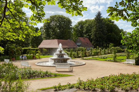 So erfahren Besucher u.a.  informative Hintergründe zur Geschichte des 17 ha großen Parkensembles, in dem zehntausende  Rosen in fast 1.000 Sorten umgeben sind von historischer Gartenkunst und uralten Bäumen.