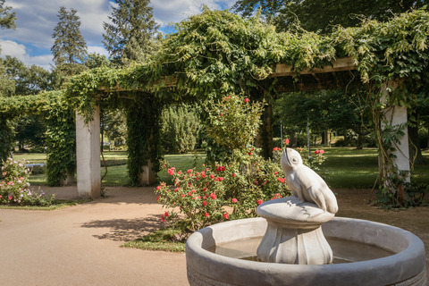 So erfahren Besucher u.a.  informative Hintergründe zur Geschichte des 17 ha großen Parkensembles, in dem zehntausende  Rosen in fast 1.000 Sorten umgeben sind von historischer Gartenkunst und uralten Bäumen.