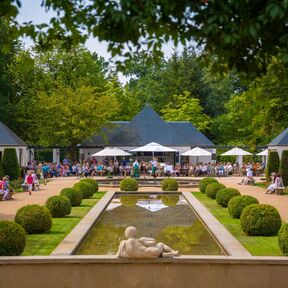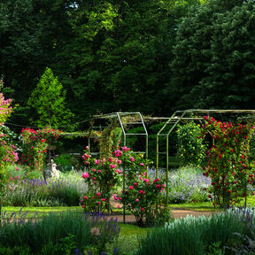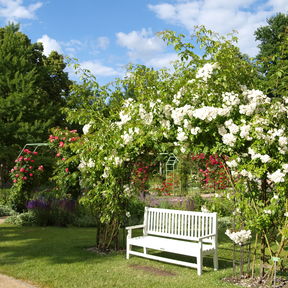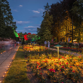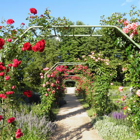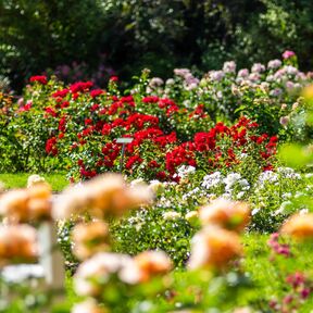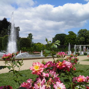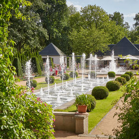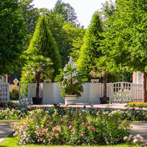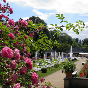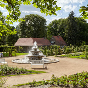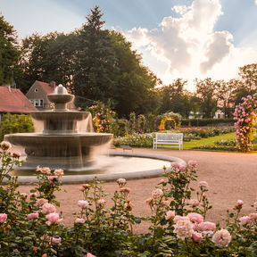 Nehmen Sie Platz im Schatten alter Bäume oder wandeln Sie in einem Meer von Duft und Farben. Genießen Sie eine Pause im Café an den Wasserspielen oder im Restaurant »Rosenflair«.