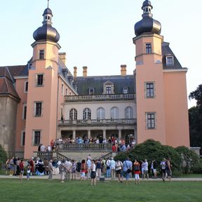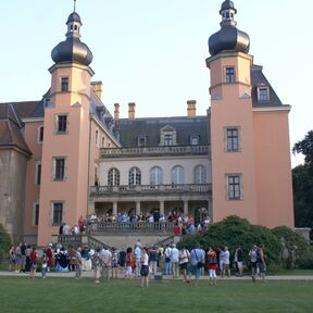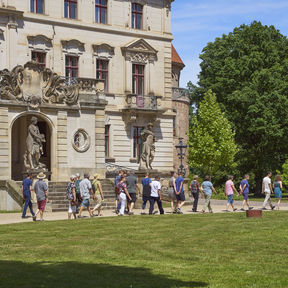 Interessierte Besucher haben ganzjährig die Möglichkeit, den Schlosspark zu besuchen. Saisonale Veranstaltungshöhepunkte, an denen auch die Besichtigung des Schlosses möglich ist, sind "Rendezvous im Garten" im Juni und die "Parksommerträume" Mitte Juli. Diese bieten klassische und moderne Unterhaltung, szenische Führungen, Ausstellungen und vieles mehr und inszenieren in der Samstagnacht Schloss und Park mit einem Lichterzauber. Zu beiden Terminen können sich Besucher bei Führungen durch Freiwillige der Internationalen Jugendbauhütte über den Sanierungsfortschritt im Park informieren, barocke Spiele im Französischen Garten sowie die musikalische Belebung des Barocken Heckentheaters erleben. Am Tag des offenen Denkmals im September werden zudem Fachführungen durch die restaurierten Schlossräume angeboten.