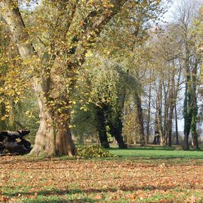 Nach dem Tod Brühls wurde der Barockgarten verlandschaftlicht. Die Parterres wurden durch eine breit angelegte Wiese mit Einzelbäumen und Baumgruppen ersetzt. Aus dieser Zeit stammen die heute noch vorhandenen seltenen Gehölze (Tulpenbaum, Platane, Hänge-Buche, Schwarzkiefer, Gelb-Kiefer, Sumpfzypresse). Im See wurden zwei Inseln aufgeschüttet, die Schwaneninsel als Verlängerung der Hauptschlossachse und die Liebesinsel, an der sich eine Bootsanlagestelle befand. Der Park war den Einwohnern und Parkbesuchern frei zugänglich.