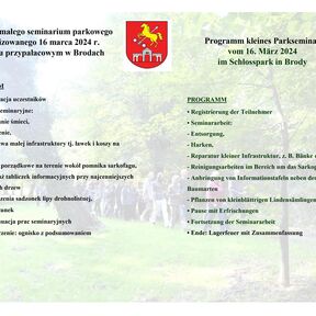 Nach dem 2. Weltkrieg wurde der Park nicht mehr gepflegt und verfiel. Wertvolle Baum- und Straucharten, die im 19. und 20. Jh. gepflanzt wurden, wurden von einheimischen Arten verdrängt. Seit 2009 werden in Brody deutsch-polnische Parkseminare organisiert, bei denen ehrenamtlich Tätige aus Deutschland und Polen unter fachlicher Aufsicht Ordnungs- und Pflegearbeiten durchführen. Im Rahmen dieser Maßnahmen wurden bereits viele alte Parkräume und Blickachsen geöffnet. Der zur Gemeinde Brody gehörende Teil des Schlossparks wird laufend gepflegt.