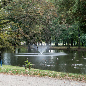 Nach der Besitzübernahme im Fürstentum Sagan durch Herzogin Dorothea Talleyrand-Périgord begann eine völlig neue Zeit der Gestaltung von Schloss- und Parkanlage. Die Arbeiten umfassten 205 Hektar, samt sogenannter Belaria an der Straße in Richtung Kożuchów und dem Park an dem Jagdschloss der Herzogin. Die Gestaltung der Anlage begann im Jahre 1844 und dauerte bis 1859 an.